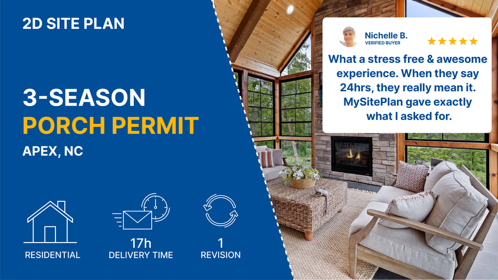 MySitePlan.com delivers most site plans for Apex, North Carolina within 24 hours, ensuring your project stays on schedule. Our streamlined process and experienced team can handle rush orders to meet tight permit deadlines. We understand local requirements in North Carolina and create compliant drawings quickly.
