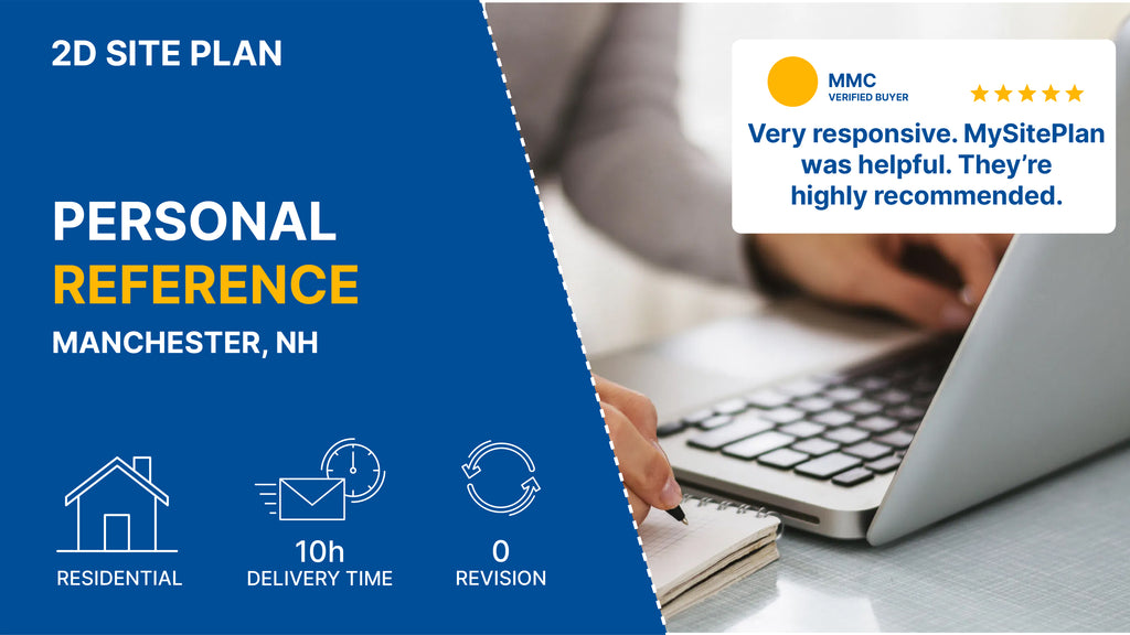 MySitePlan.com delivers most site plans for Manchester, New Hampshire within 24 hours, ensuring your project stays on schedule. Our streamlined process and experienced team can handle rush orders to meet tight permit deadlines. We understand local requirements in New Hampshire and create compliant drawings quickly.