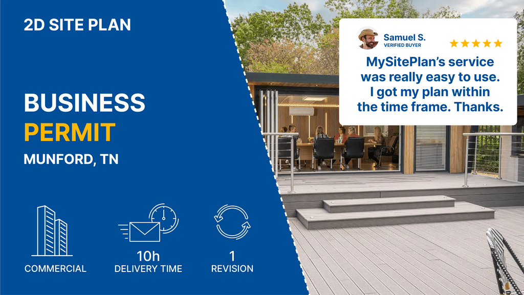 Absolutely! MySitePlan.com specializes in commercial site plans for businesses throughout Munford, Tennessee. Our commercial drawings meet stringent local requirements, include parking layouts, accessibility compliance, and all elements required by Tennessee commercial building codes. We handle retail, office, industrial, and mixed-use developments.