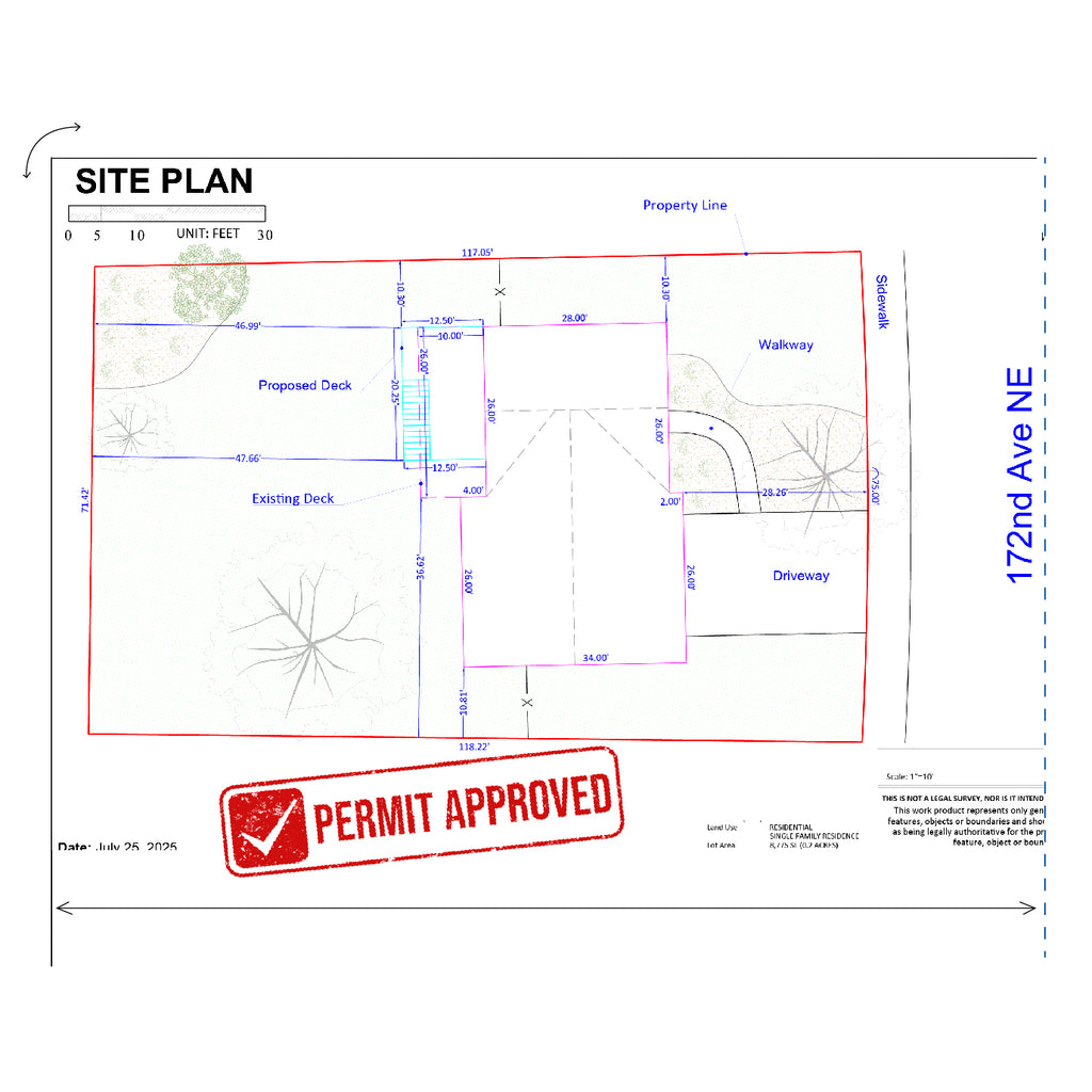 Yes, MySitePlan.com drawings are widely accepted by permit offices throughout Redmond, Washington. Our site plans meet or exceed local building department standards and include all required elements such as property boundaries, setbacks, existing structures, and utility locations as mandated by Washington regulations.