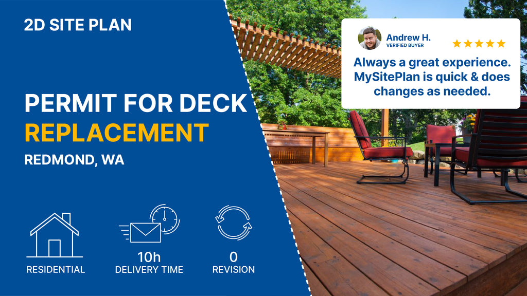 MySitePlan.com delivers most site plans for Redmond, Washington within 24 hours, ensuring your project stays on schedule. Our streamlined process and experienced team can handle rush orders to meet tight permit deadlines. We understand local requirements in Washington and create compliant drawings quickly.