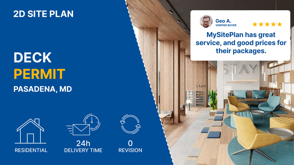 Yes, MySitePlan.com drawings are widely accepted by permit offices throughout Pasadena, Maryland. Our site plans meet or exceed local building department standards and include all required elements such as property boundaries, setbacks, existing structures, and utility locations as mandated by Maryland regulations.