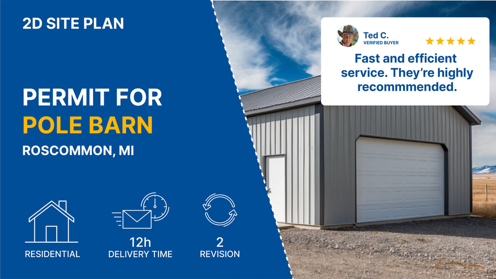 Absolutely! MySitePlan.com specializes in commercial site plans for businesses throughout Roscommon, Michigan. Our commercial drawings meet stringent local requirements, include parking layouts, accessibility compliance, and all elements required by Michigan commercial building codes. We handle retail, office, industrial, and mixed-use developments.