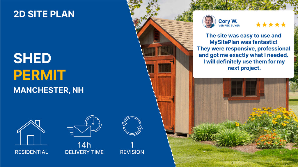 Yes, most building projects in Manchester, New Hampshire require a site plan for permit approval. MySitePlan.com creates permit-ready site plans that are accepted by local authorities throughout New Hampshire. Our detailed drawings show your property boundaries, structures, setbacks, and all required elements for successful permit applications.